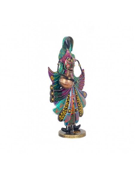 Figura decorativa llena de color y con un diseño muy detallado que llama la atención por sus formas estilizadas y su acabado artístico.
