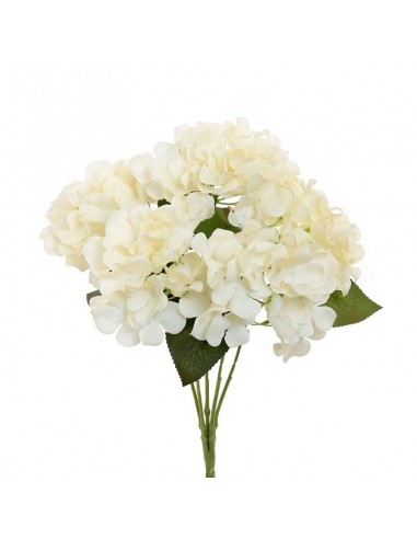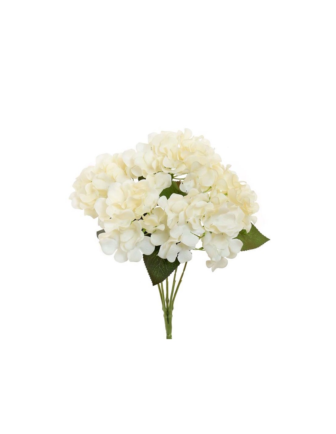 Ramo de hortensias con flor compacta y hojas verdes en su parte posterior.