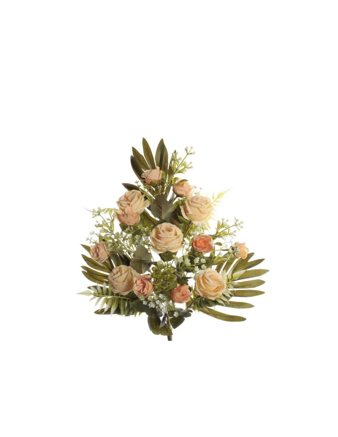 Ramo encarado con capullos de rosas de diferentes tamaños, acompañadas de delicadas flores pequeñas y hojas que aportan volumen y un aire fresco y equilibrado.