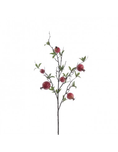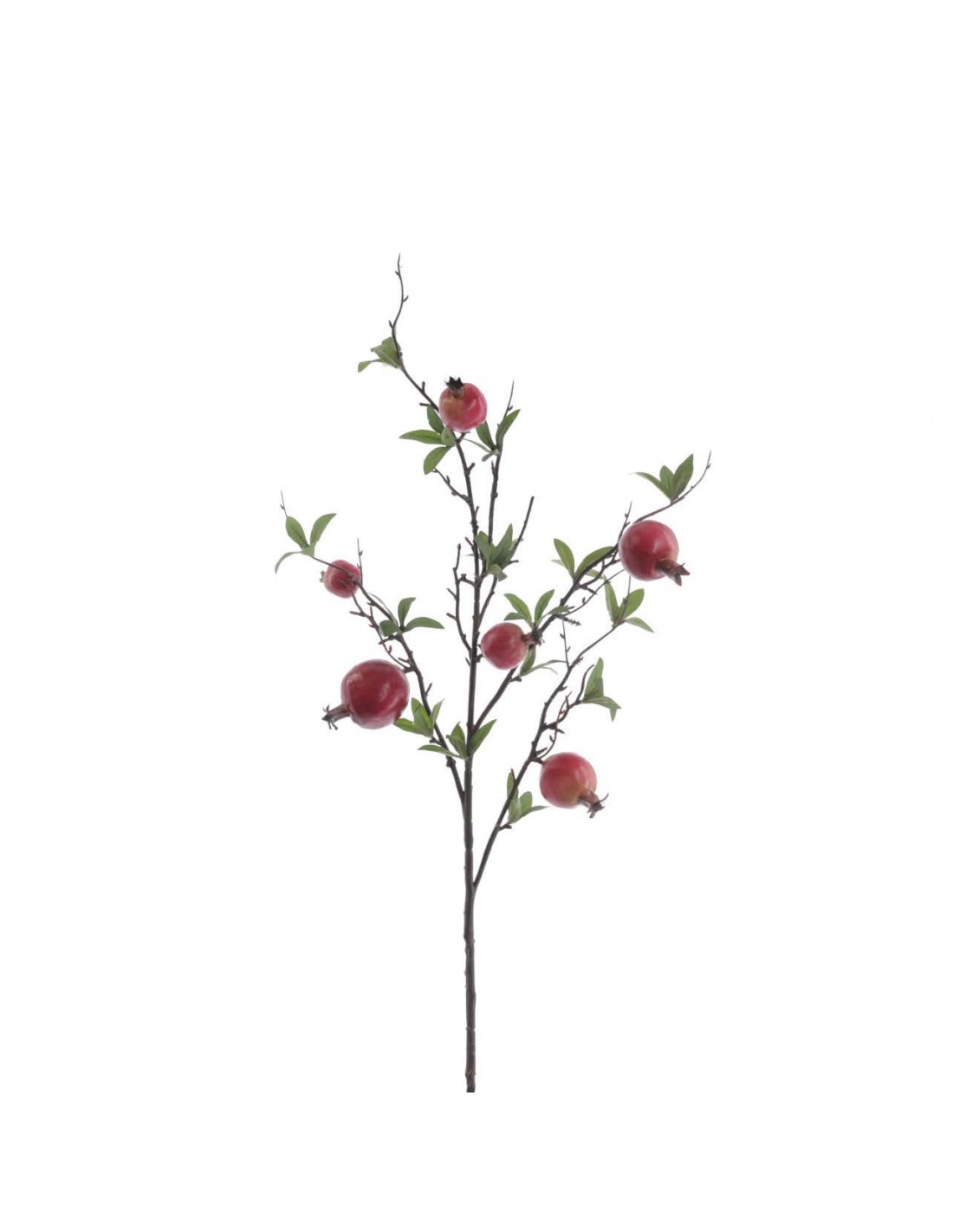 Vara decorativa con pequeñas hojas verdes y frutos de granada de acabado brillante que aportan un toque rústico y lleno de color.