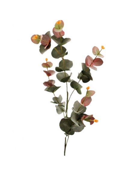 Vara de eucalipto artificial de gran realismo decorada con unas sutiles florecitas.