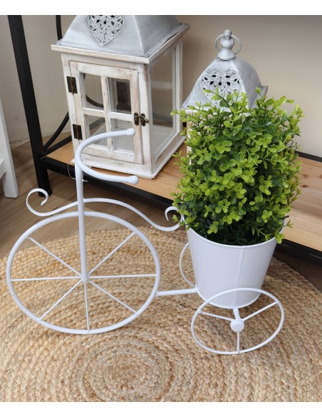 Este original macetero en forma de bicicleta blanca es perfecto para darle un toque único y divertido a tu espacio.