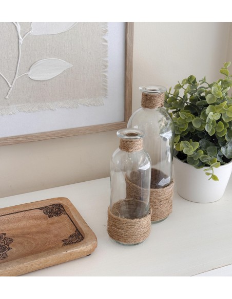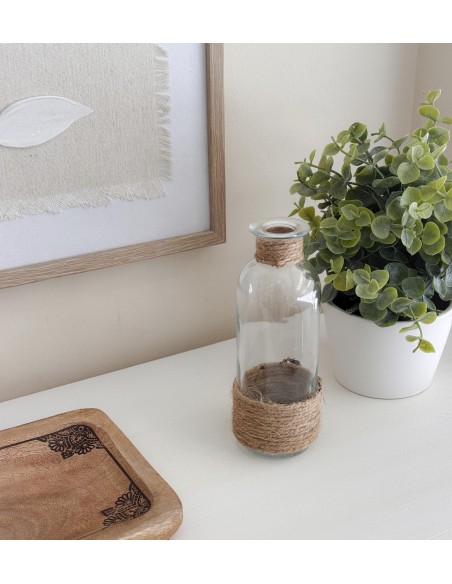 Esta botella decorativa con detalles de cuerda es sencillo y encantador.
