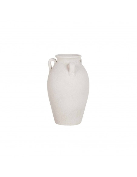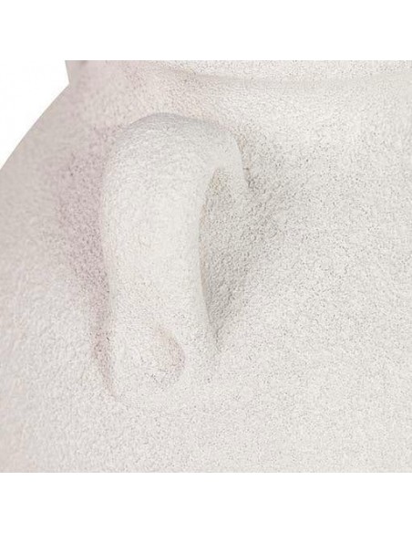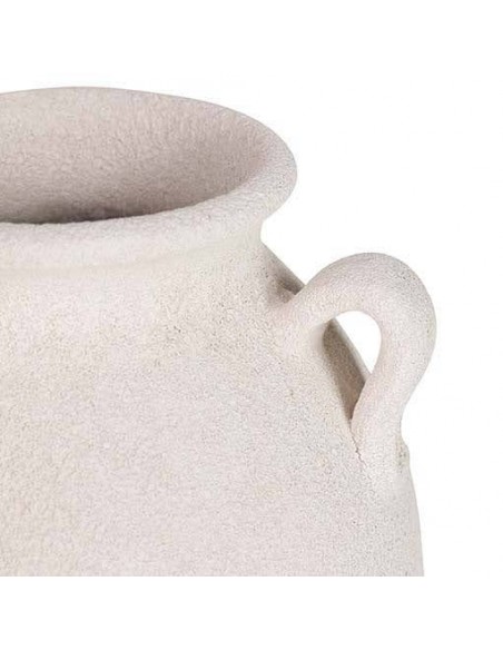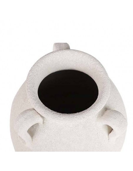Con un diseño de inspiración clásica, este jarrón de cerámica en color blanco destaca por su acabado rugoso y sus asas decorativas que le aportan carácter y estilo artesanal.