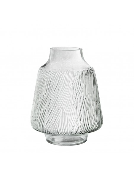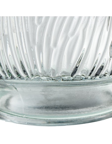 Jarrón de vidrio con un elegante relieve texturizado que imita las vetas naturales de la madera.