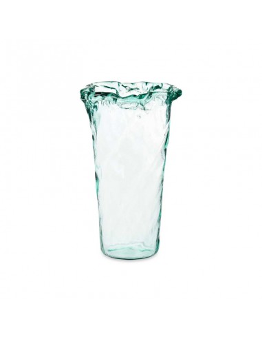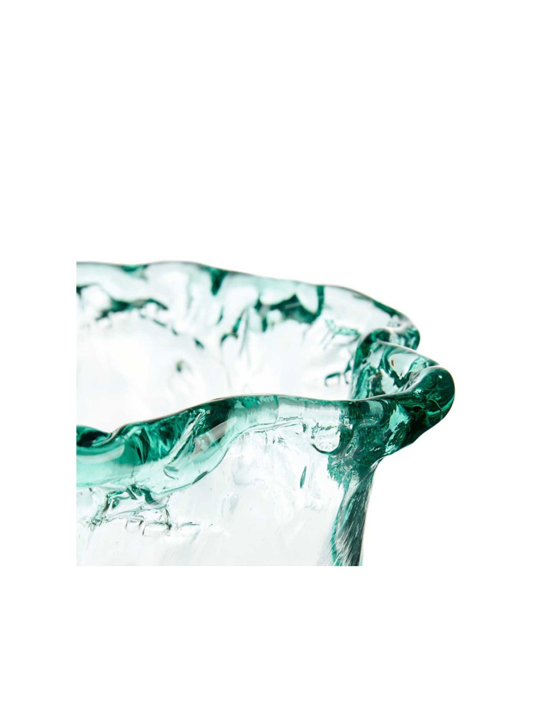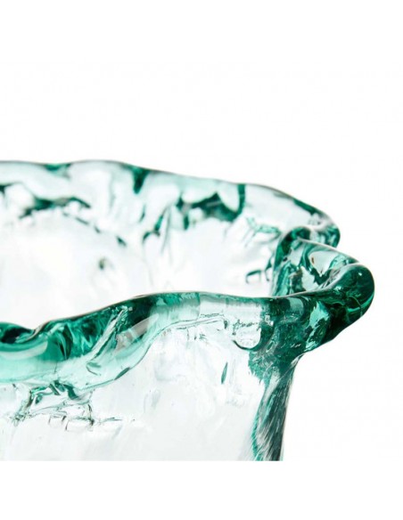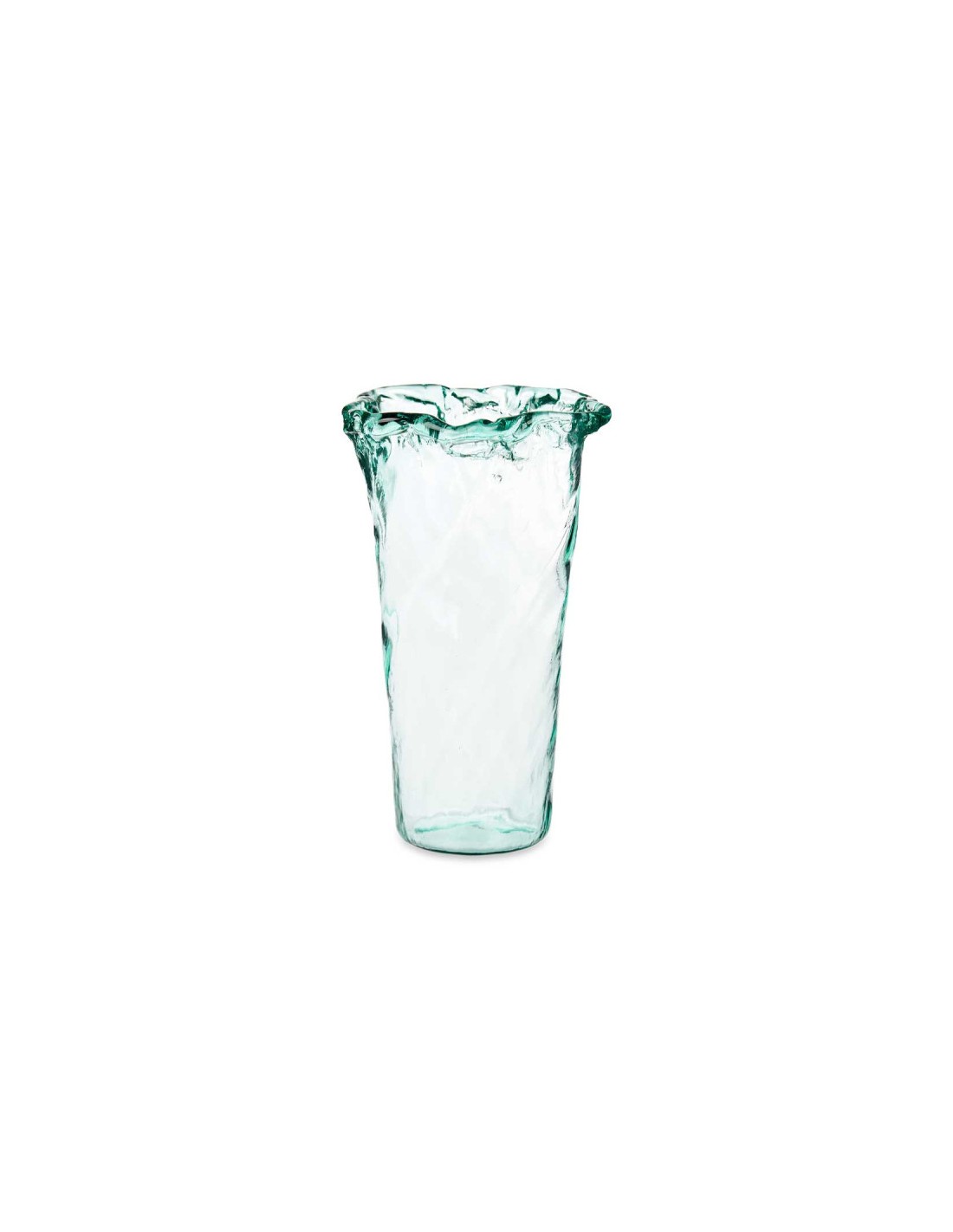 Llamativo jarrón de cristal reciclado con acabado orgánico y borde irregular que recuerda al movimiento del agua.