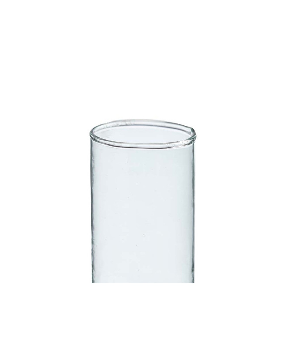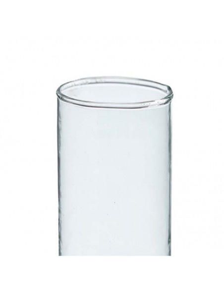 Jarrón de vidrio reciclado con forma cilíndrica alargada y acabado ligeramente irregular que le aporta un encanto artesanal.