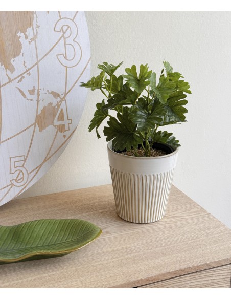 Queda genial en estanterías, escritorios o rincones con luz natural.