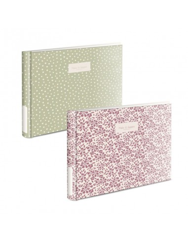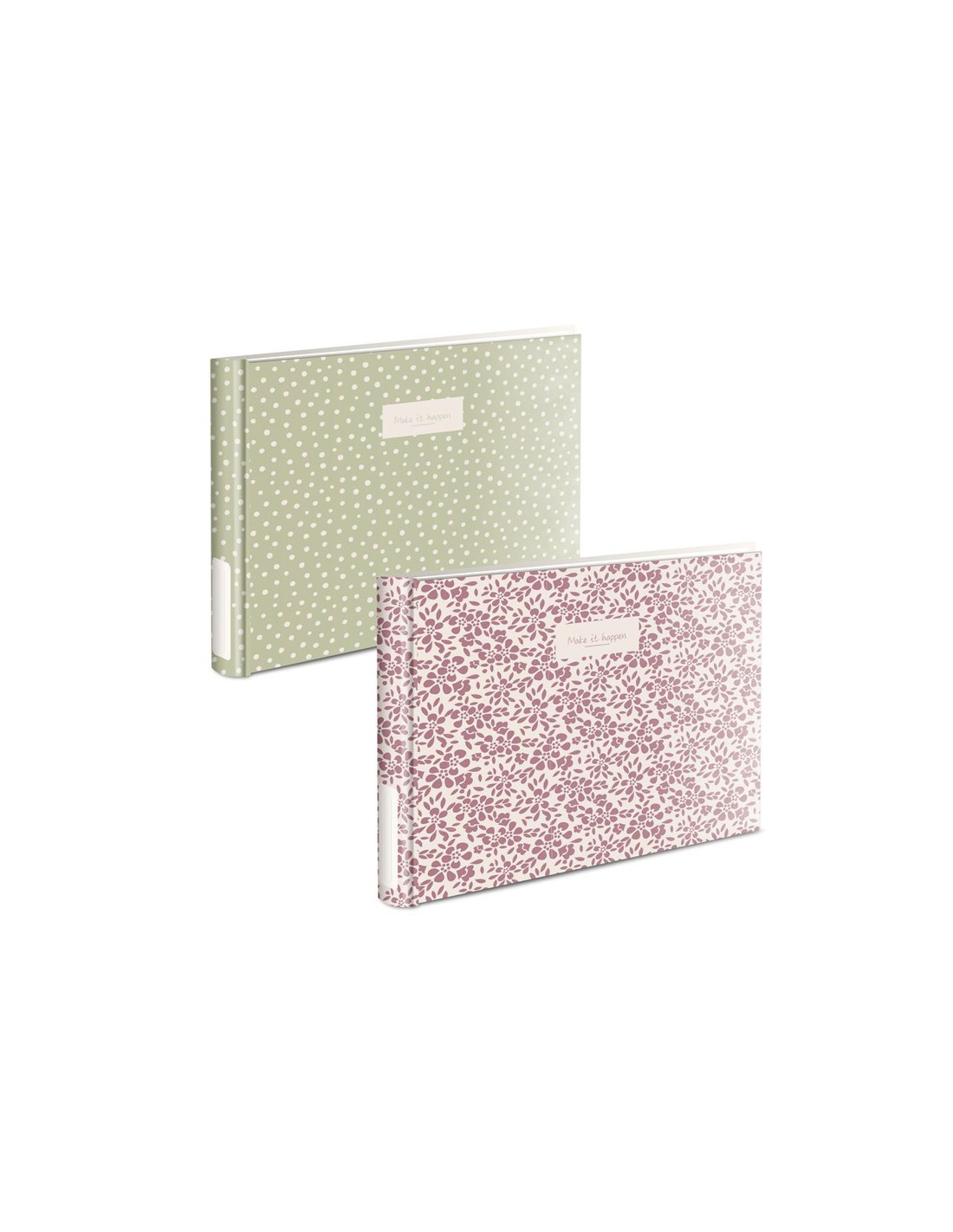 Álbum de fotos con diseño delicado y actual, disponible en dos modelos: estampado floral o de lunares, ambos con la frase “Make it happen” en la portada.