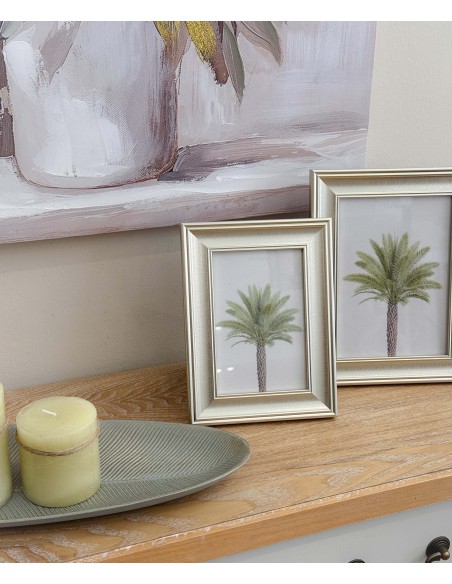 Un marco decorativo con borde efecto metalizado y acabado elegante que aporta un aire clásico y sofisticado a tus fotografías.