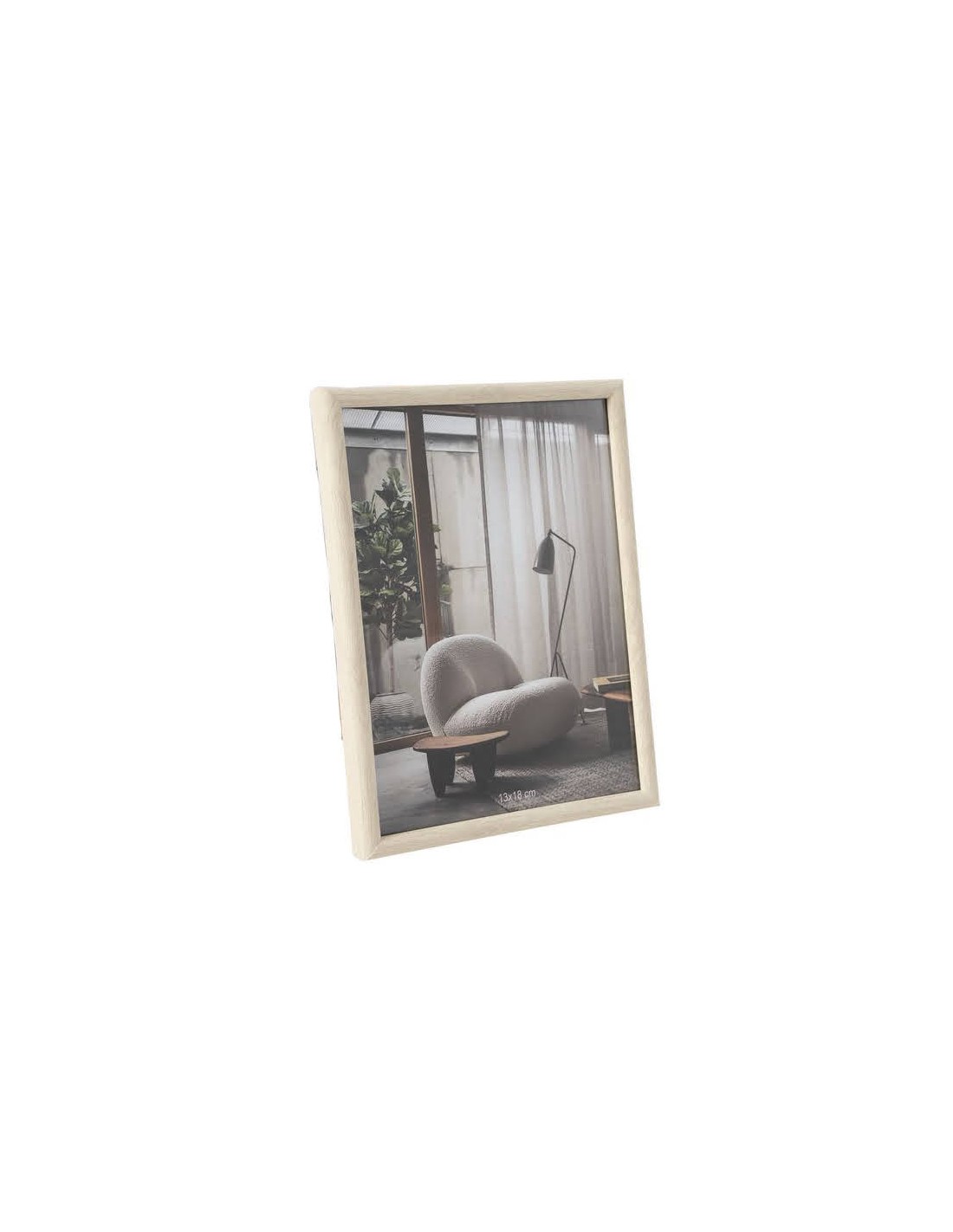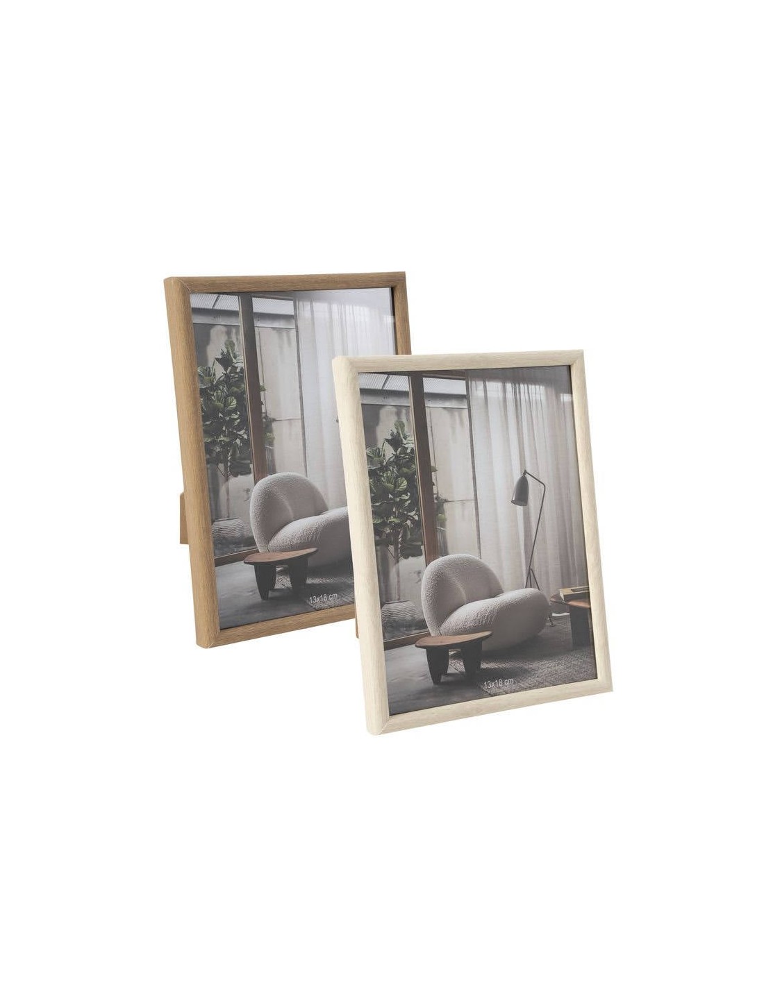 Bonito marco de foto de PVC con efecto madera, de acabado natural y textura visual realista.