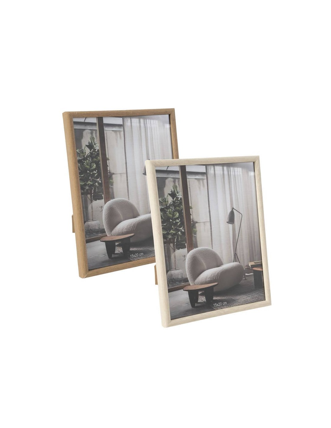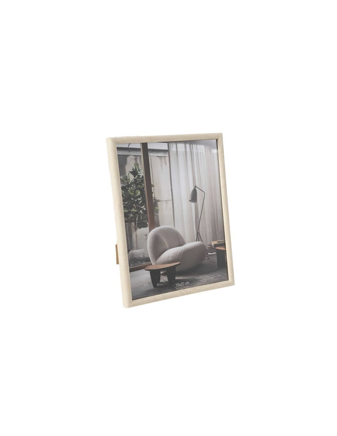 Bonito marco de foto de PVC con efecto madera, de acabado natural y textura visual realista.