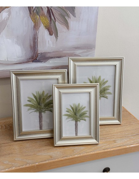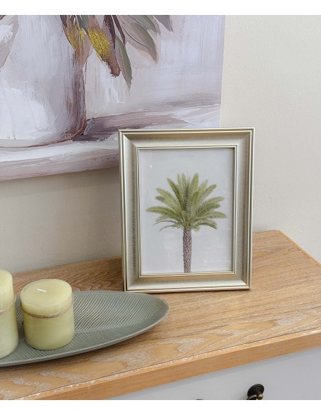Un marco decorativo con borde efecto metalizado y acabado elegante que aporta un aire clásico y sofisticado a tus fotografías.