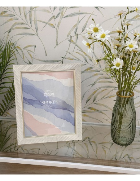 Diseño sencillo con un toque especial: este marco blanco con relieve en diagonal destaca por su acabado limpio y actual. Ideal para resaltar tus fotos favoritas con un aire elegante y sereno.