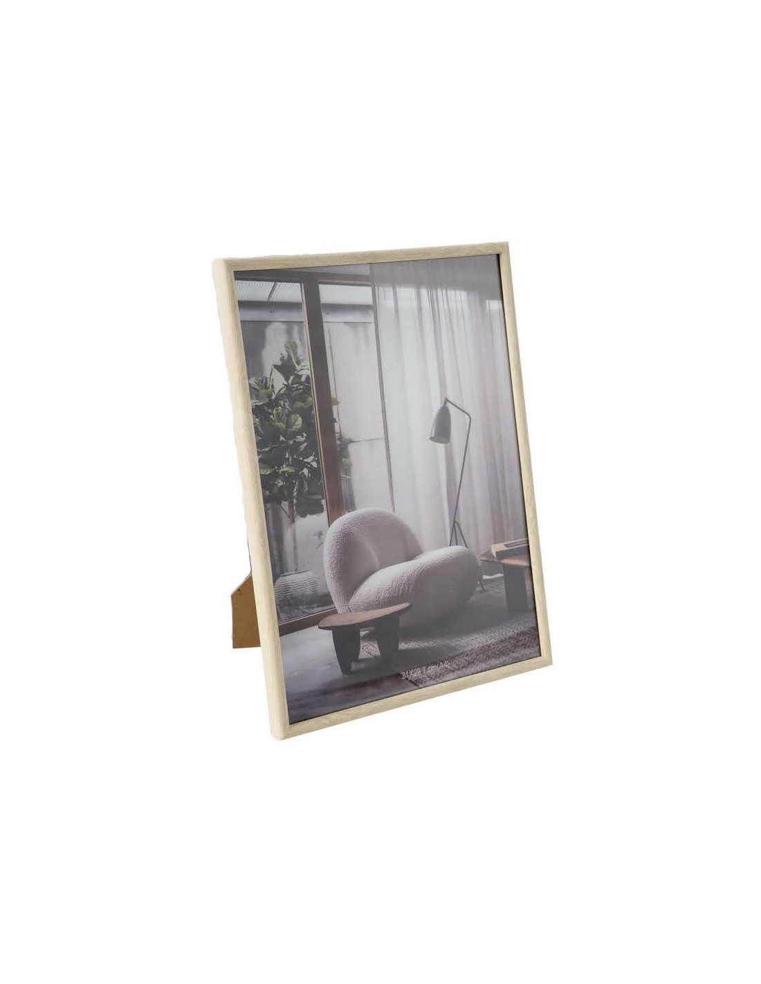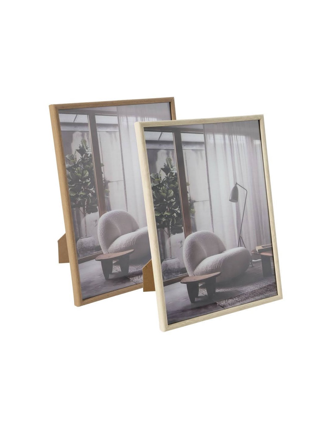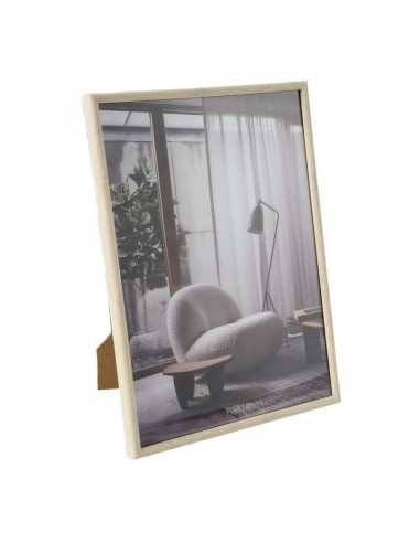Bonito marco de foto de PVC con efecto madera, de acabado natural y textura visual realista.