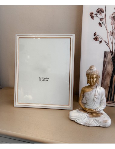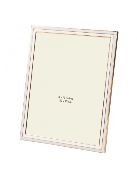 Elegante marco de foto con estructura metálica en dorado y doble borde blanco, que aporta un aire elegante y luminoso.