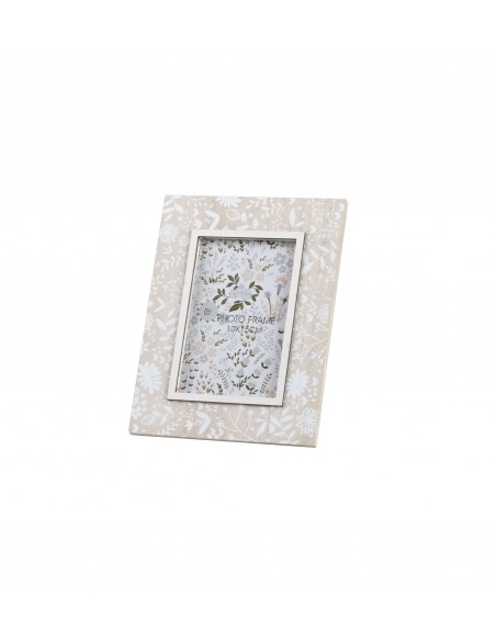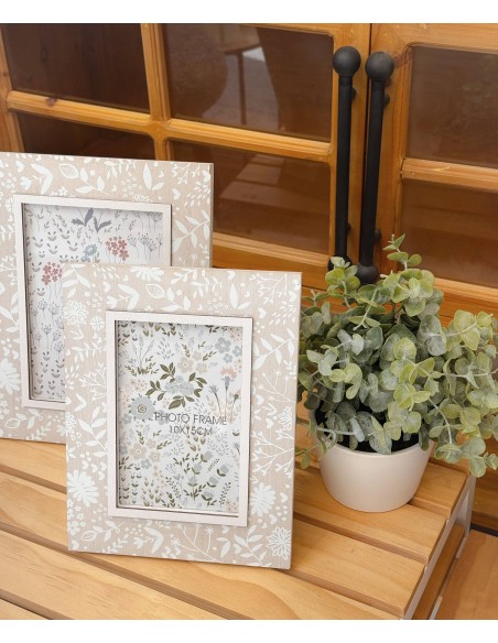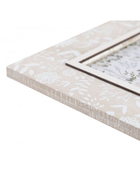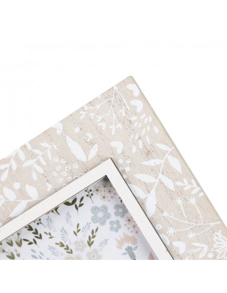 Este marco combina una base de madera clara con un sutil estampado blanco de motivos florales que lo hace muy especial.