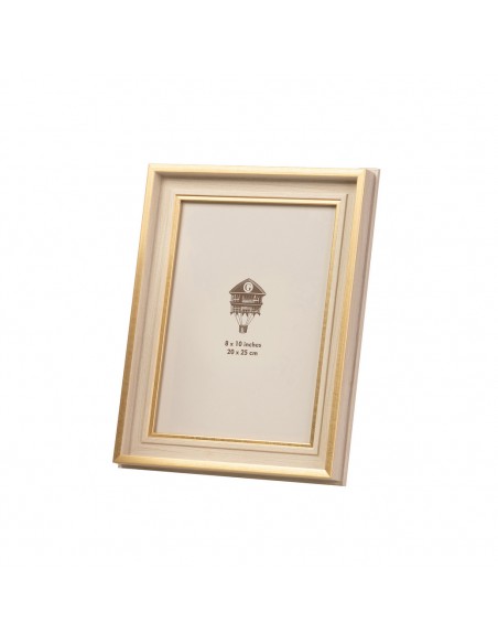Bonito portafotos con marco profundo efecto madera clara con bordes dorados color dorado muy elegante.