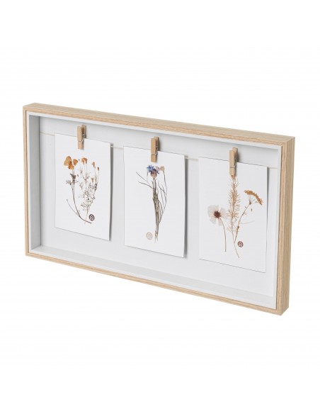 Moderno y sencillo marco de madera que combina el tono natural con el color blanco.