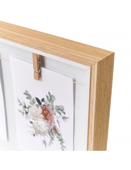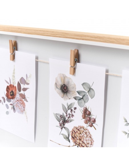 Incluye una cuerda con tres pinzas para poner tus mejores recuerdos y cambiarlos con gran facilidad.