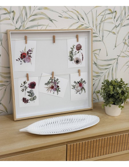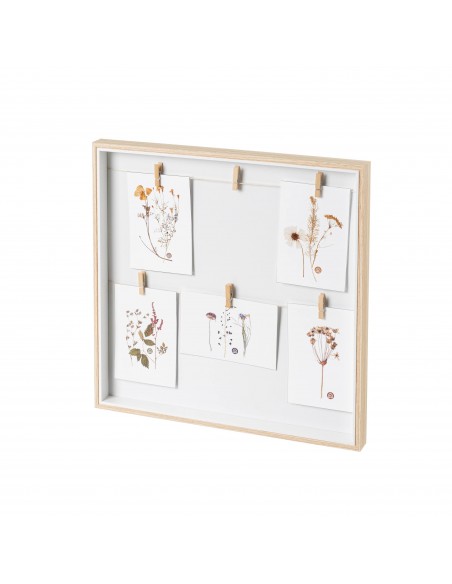 Moderno y sencillo marco de madera que combina el tono natural con el color blanco.