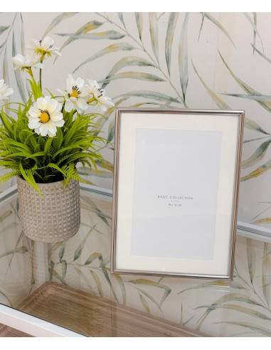 Elegante marco de foto hecho de acero en color plateado para fotos de 10x15cm.