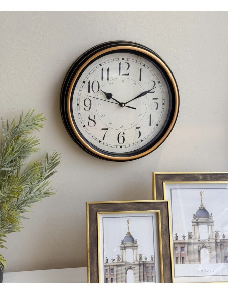Este reloj de pared redondo de 30 cm, con un original diseño de estilo vintage.