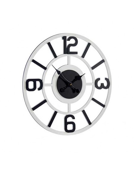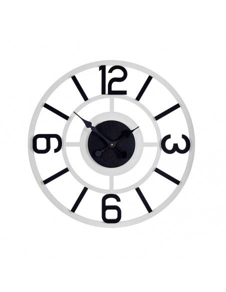 Este es de formato redondo, mide 60cm de diámetro y presenta una estructura de madera en blanco y negro.
