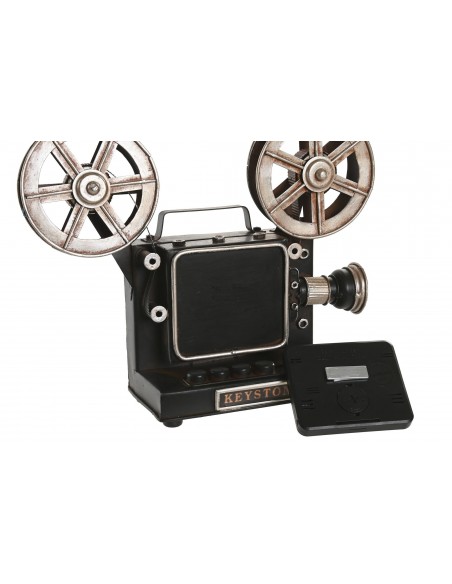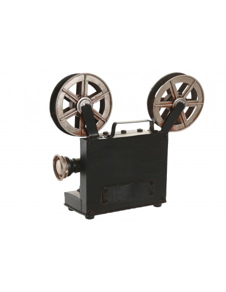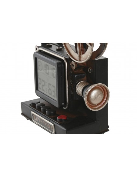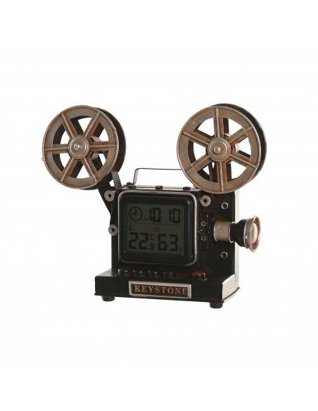 Original reloj digital con forma de proyector de cine clásico, fabricado en metal con acabado envejecido y detalles en cobre.