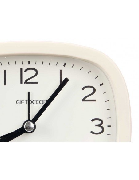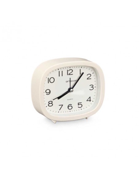 Pequeño reloj de sobremesa con marco de PCV en color crema.
