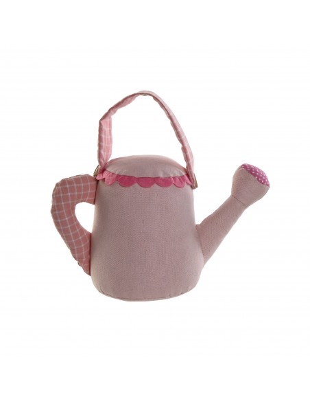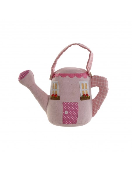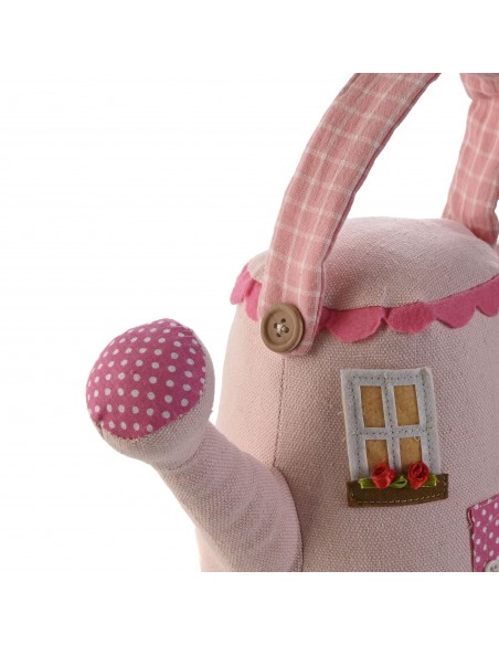 Este sujetapuertas con forma de regadera y diseño de casita en tonos rosa es de poliester y está lleno de ternura.