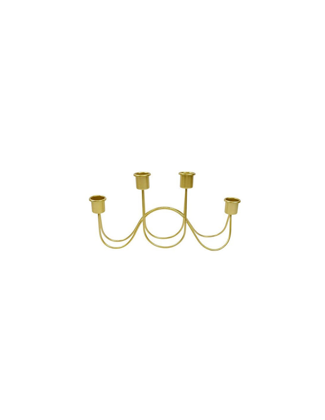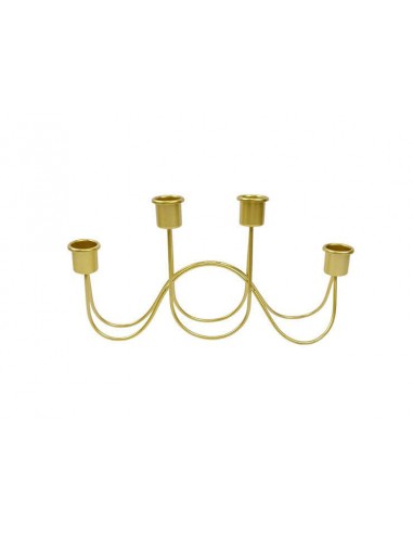 Elegante candelabro de diseño curvo en acabado dorado, con capacidad para cuatro velas.