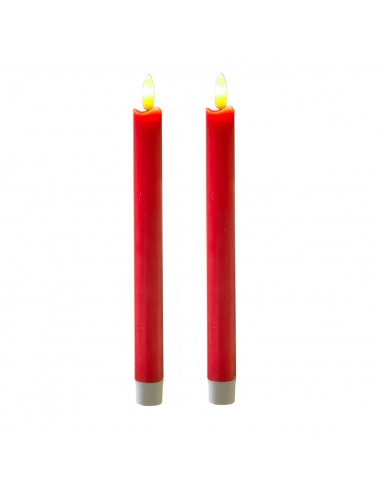 Set de 2 velas con luz led de color rojas con una forma perfecto para poner en candelabros.