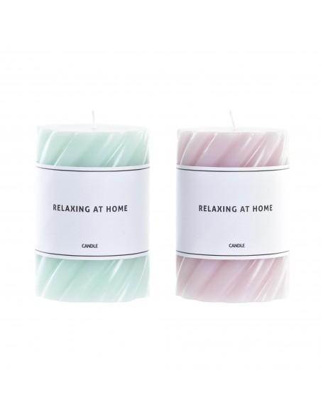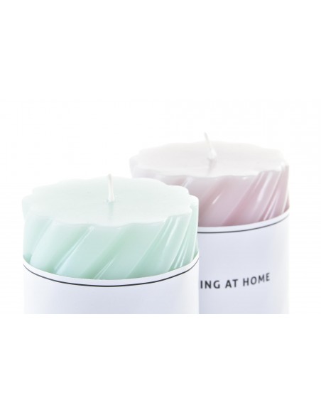 Vela en forma de cilindro con un diseño de ondas que parece una espiral.