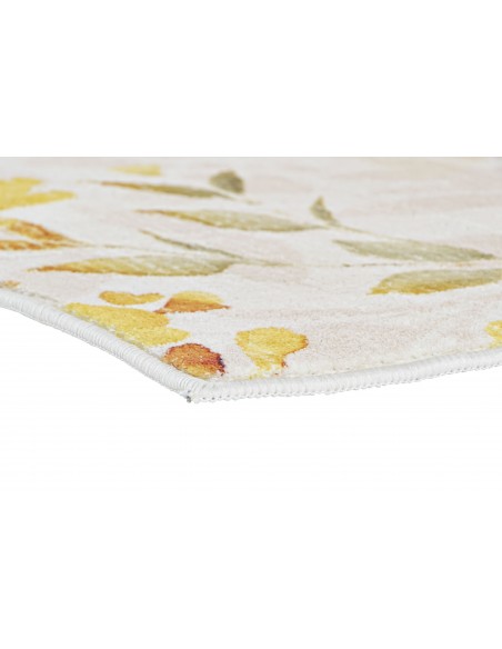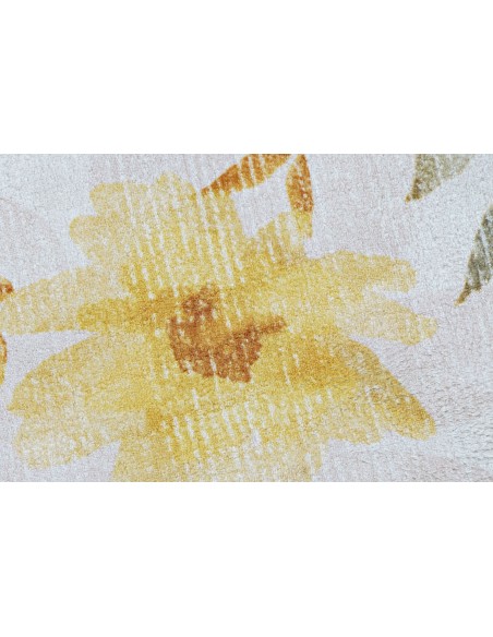 Tiene forma rectangular y está confeccionada en algodón y presenta un estampado floral amarillo un color súper vivo y alegre.