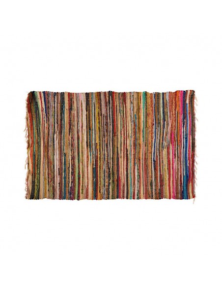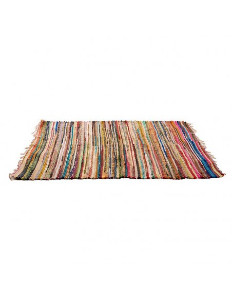 Alfombra de jarapa multicolor en forma rectangular con flecos en sus extremos.