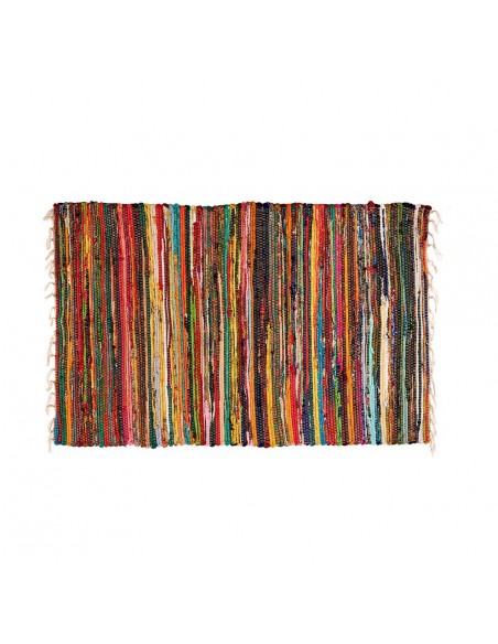 Alfombra de jarapa multicolor en forma rectangular con flecos en sus extremos.