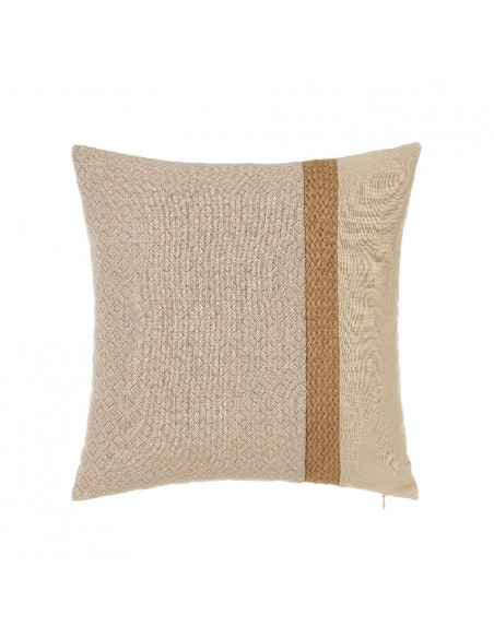 Este elegante cojín cuadrado destaca por la combinación de materiales, colores y texturas que le aportan un toque diferente y original.