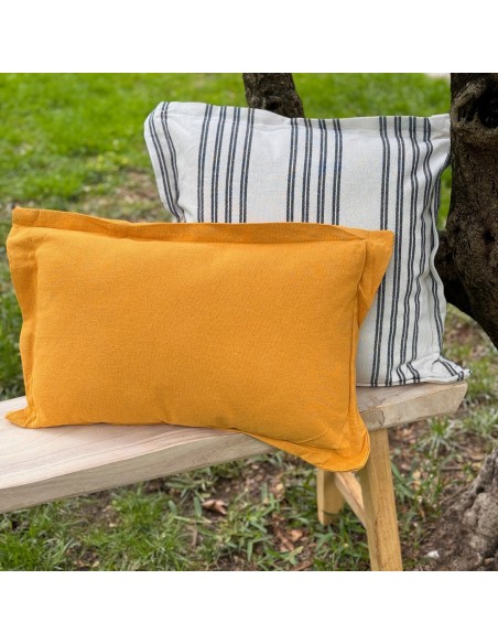 Sencillo cojín liso rectangular en un precioso y original color albaricoque con un tamaño de 50x30cm.