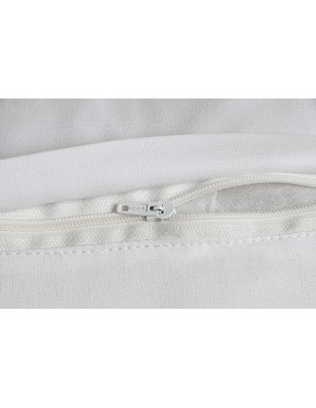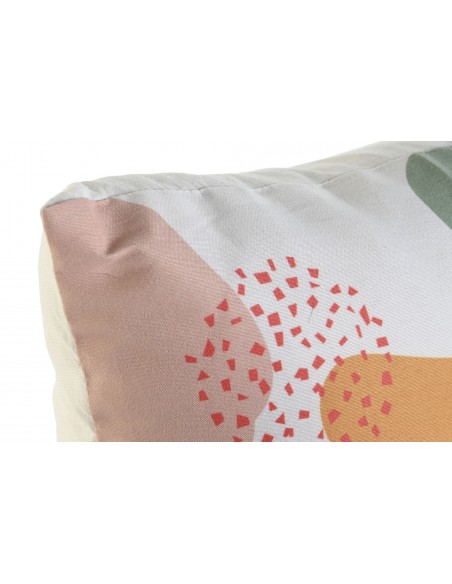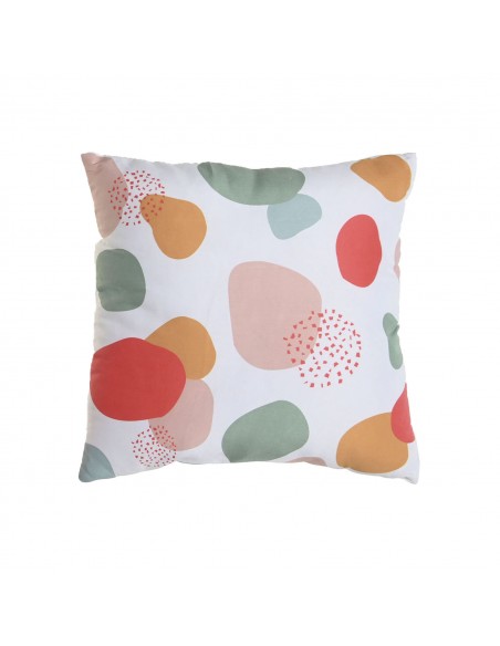 Cojín cuadrado de 41cm con fondo blanco y un estampado de círculos multicolor muy divertido.