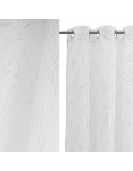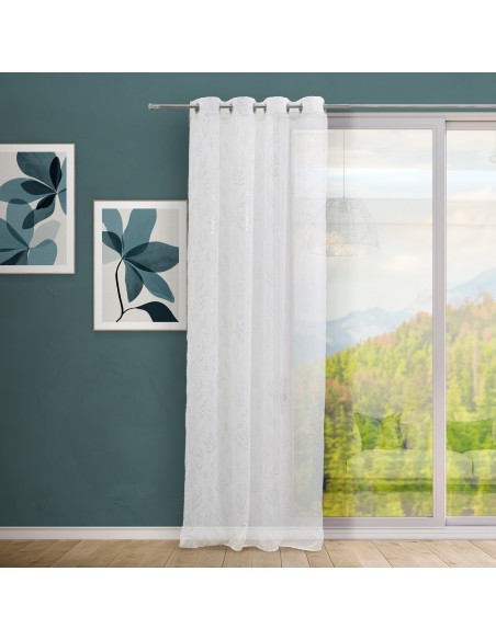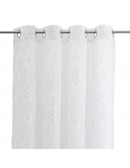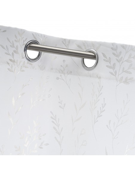 Ilumina tus espacios con esta cortina visillo blanca taslúcida que destaca por su delicado estampado floral de brillo plateado. Ideal para crear ambientes luminosos y modernos, esta cortina combina funcionalidad y estilo en una sola pieza. Su diseño con ojales la hace muy fácil de instalar en cualquier barra estándar.