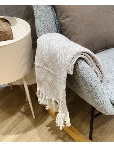 Plaid decorativo de tacto suave con diseño de rayas en espiga. Su acabado con flecos aporta un aire acogedor y desenfadado que lo hace perfecto para cualquier rincón del hogar.