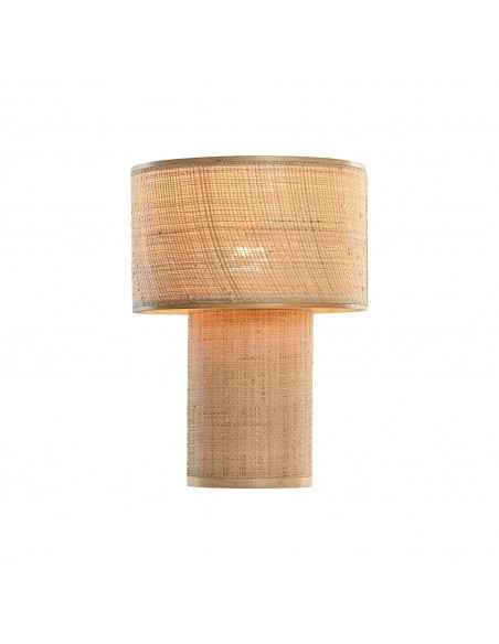 Su estructura cilíndrica está elaborada en bambú natural, aportando textura y estilo boho.