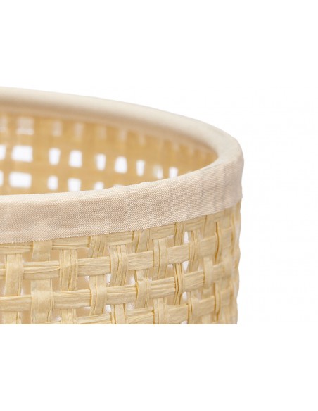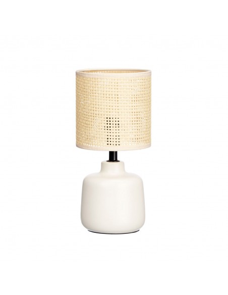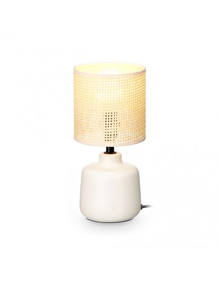 Su pantalla, confeccionada con fibra entrelazada, permite que la luz se traspase de manera delicada, creando una atmósfera cálida y relajante. Perfecta para cualquier rincón de tu hogar, esta lámpara no solo ilumina, sino que transforma el ambiente, invitando a disfrutar de momentos de calma y confort. Ideal para mesitas de noche, escritorios o como iluminación suave en el salón.