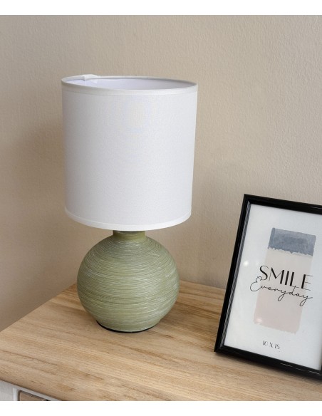 Lleva pantalla blanca cilíndrica que equilibra el conjunto con un aire ligero. Ideal para mesillas, muebles auxiliares o rincones donde quieras aportar un punto de luz decorativo.
