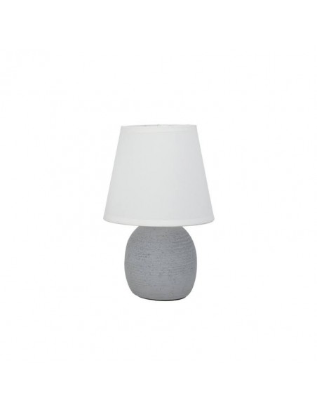 Bonita lámpara de mesa con base redondeada de cerámica en tono gris y pantalla cónica de color blanco, ideal para aportar un aire fresco y elegante a cualquier estancia.
