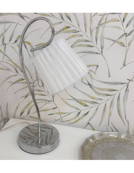 Con un diseño curvo y cómodo, esta lámpara de sobremesa en acabado cromo es perfecta para aportar un toque de distinción a cualquier espacio.