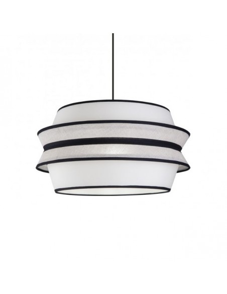 Original lámpara colgante de techo que destaca por su doble pantalla circular una dentro de otra que combina color blanco, negro y gris que aportará un aire muy moderno a tu salón o comedor.