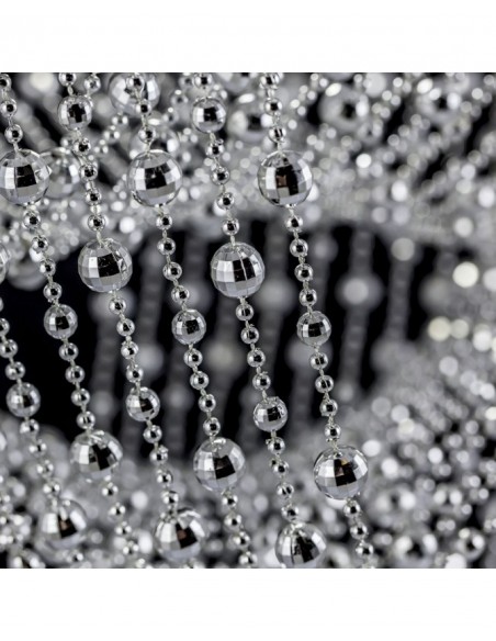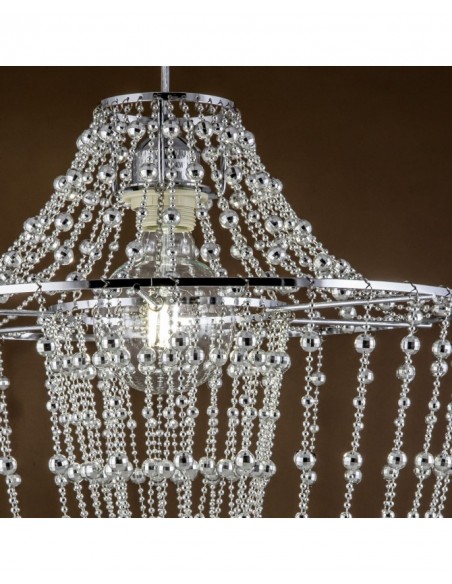 Esta lámpara de techo tiene por toda su estructura cuentas esféricas geométricas plateadas para reflejar la luz en todo el espacio.