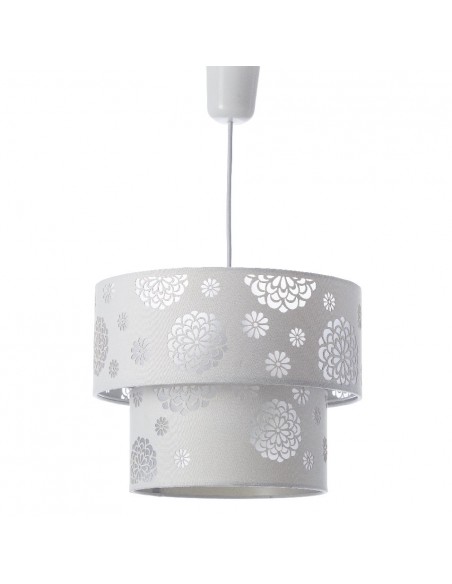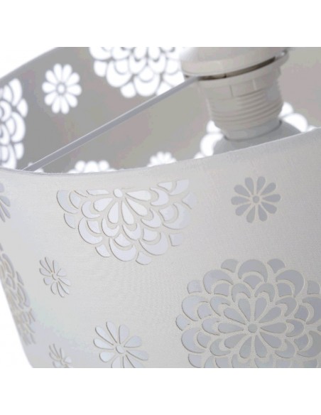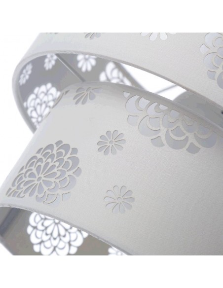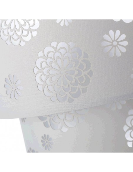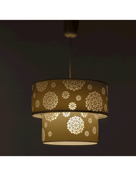 Bonita y original lámpara de techo realizada en pvc y poliéster con flores caladas.